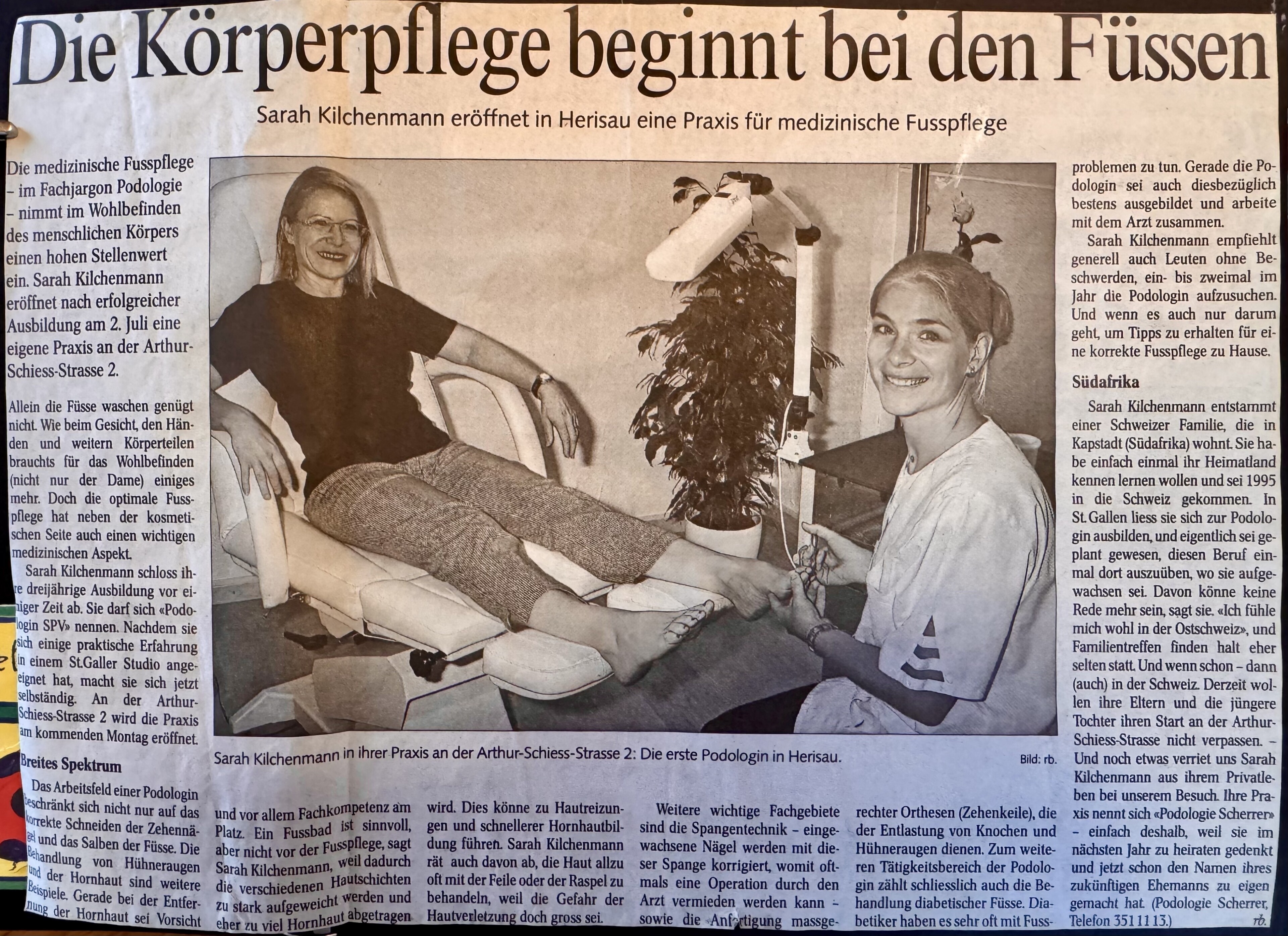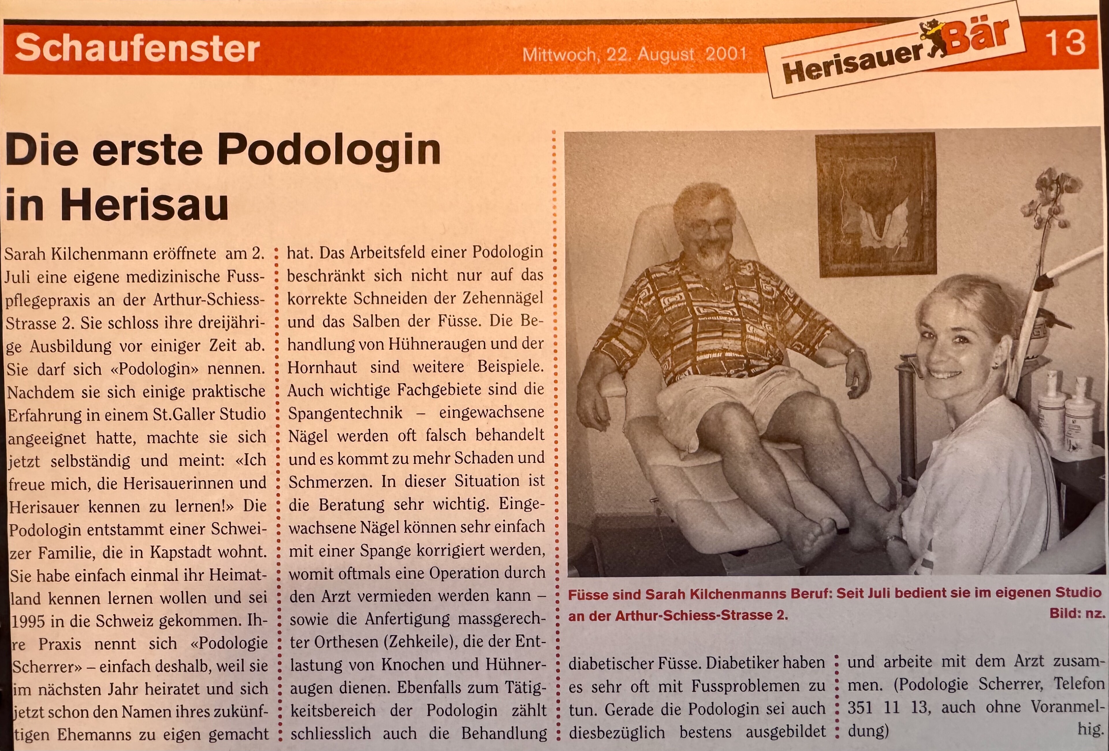 Im Jahr 2001, frisch nach Herisau gezogen, eröffnete ich meine Podologenpraxis an der Arthurschiessstrasse 2 – damals die erste Podologenpraxis in Herisau. Fünf Jahre später kam mein erstes Kind zur Welt, was mich dazu veranlasste, die Praxis zu schliessen, da ich diese nicht mehr alleine weiterführen konnte. Meine Leidenschaft für die Podologie gab ich jedoch nicht auf; stattdessen arbeitete ich einige Tage in der Woche von zu Hause aus. Als zwei Jahre später meine Zwillinge zur Welt kamen, blieb vorübergehend keine Zeit mehr für die Fusspflege.